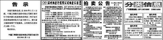 受温州建设集团公司委托,定于2010年2月8日下午2时30分,在本公司拍卖厅,对下列标的(详见资料)进行公开拍卖: