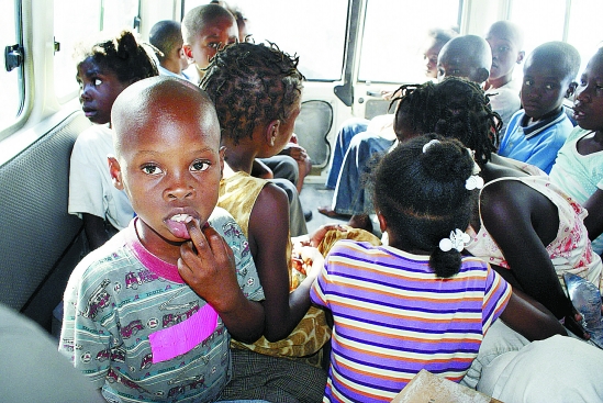 1月30日,在海地首都太子港,一些怀疑被贩卖的儿童坐在一辆警车中。 新华社发