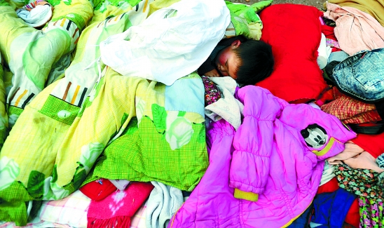 | 1月31日上午,记者从四川省地震局了解到的最新消息称,当日凌晨发生在四川遂宁与重庆潼南交界处的5.0级地震,已造成1人死亡,13人受伤,受损及倒塌房屋千余间。图为当日在遂宁市安居区老木垭村,一名儿童在安全地带熟睡。 新华社发 |