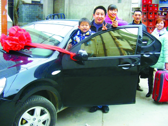 2月2日上午,在玉环县龙溪乡创业的湖北蕲春人田景阳,开着一辆花了6万多元钱买的小轿车,带上一家人回家过春节。像田景阳一样务工创业的新玉环人,今年有20多位开私家车回家过年。 本报记者 陈敢 通讯员 詹智 摄