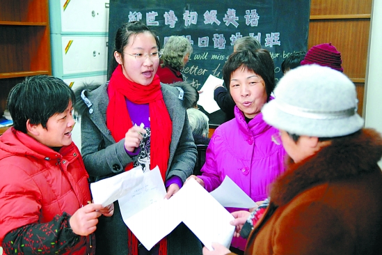2月3日下午,嘉善县魏塘街道浒弄社区居委会,参加社区“迎世博英语口语班”的老妈妈们,用刚刚学会的英语相互对话。 报道组 王建超 摄