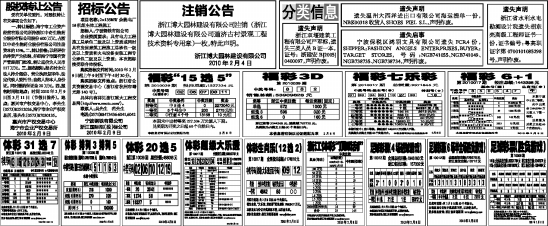 更多信息查询:浙江体育彩票网 www.zjlottery.com