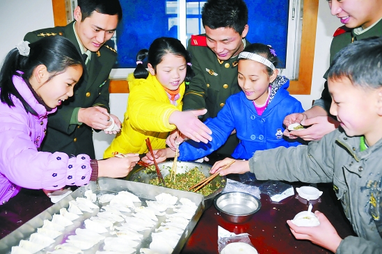 近日,台州永真民工子弟学校的民工子弟,与边防官兵一起包饺子迎新年。