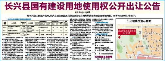长兴县国有建设用地使用权公开出让公告