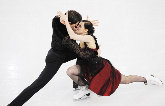 2月19日,加拿大选手弗丘(右)/莫伊尔在冰舞规定舞比赛中。当日,他们以42.74分的成绩排名第二位。 新华社发