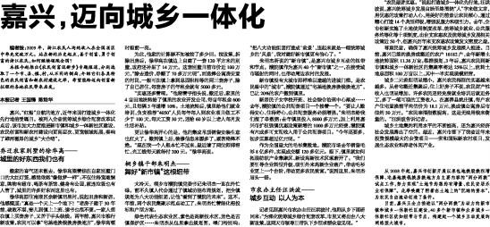嘉兴,“红船”启航的地方,近年来因打造城乡一体化先行地倍受瞩目。被列入全省统筹城乡综合配套改革试点后,该市加大力度推进新市镇和城乡一体新社区建设,农民创富和新农村建设向更高层次、更宽领域拓展,奏响了雄浑激昂的城乡“大合唱”。