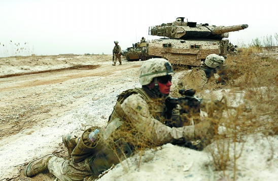 图为2月21日,美国士兵在阿富汗赫尔曼德省马尔贾地区参加军事行动。 新华社发