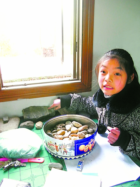尽管进城读书了,沙滩上捡石子仍是周玲喜爱的游戏。