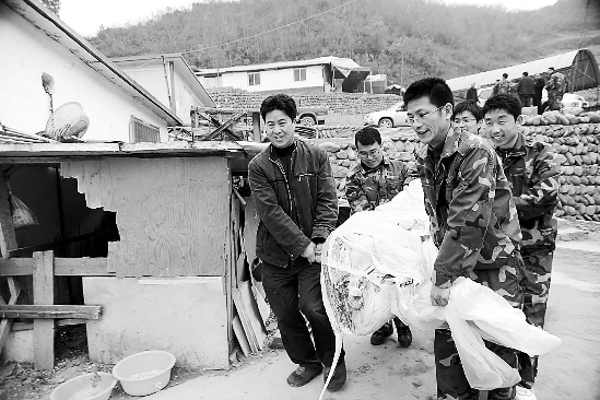 元宵节当天,省支援青川县灾后恢复重建指挥部领导,分别来到马公乡、石坝乡和红光乡,为驻扎在这几个乡的衢州市、丽水市、舟山市援建指挥部送去猪肉、水果、蔬菜等,并向援建者们致以节日的问候。本报记者 王志浩 摄