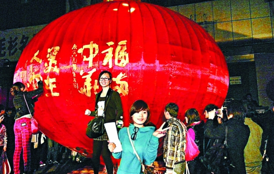在杭州武林广场,一只高8米、宽6米的特大灯笼吸引着市民的眼球。