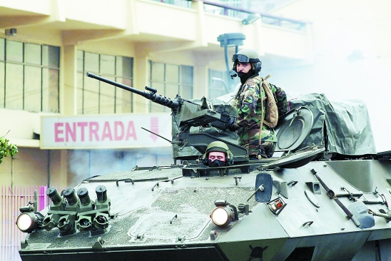 智利士兵在康塞普西翁街头巡逻,防止抢劫和维持秩序。 新华社发