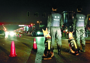 | 在温州市区某出城卡点,民警正设卡检查。 潘林昶 赵军 摄 |