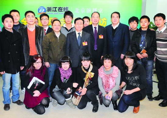 3月3日上午,省委书记赵洪祝等领导来到浙江在线北京演播室,看望浙江日报报业集团参加全国“两会”报道的采编人员。本报记者 潘海松 摄