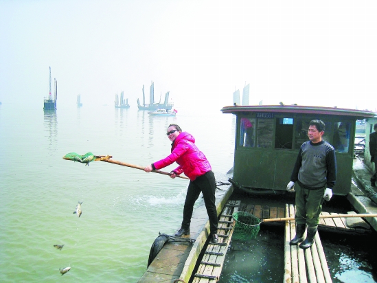 | 2月22日,在第二届太湖放鱼节上,湖州市体彩中心的代表与省渔政工作者一起扬帆太湖,将一船1000余公斤花白鲢鱼苗放流太湖,为改善太湖水域环境出力。在认捐花白鲢鱼苗的爱心活动中,湖州体彩人共认捐花白鲢鱼苗5000余尾。据悉,一尾花白鲢鱼能消灭50公斤蓝藻。 湖体 摄 |