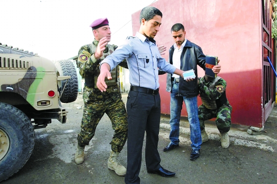 3月4日,在伊拉克首都巴格达的一个投票站,安全人员对前来投票的选民进行搜身检查。伊拉克军队、警察、医院和监狱当日先期进行议会选举投票,正式选举将于7日举行。