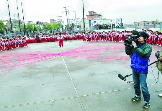 日前,东阳市江北街道亭塘小学学生在操场上“秀”跳绳绝技,90根绳子、180名学生拉起的大网绳堪绝一绝。亭塘小学学生曾获2009年全国跳绳公开赛花样跳绳第一名。