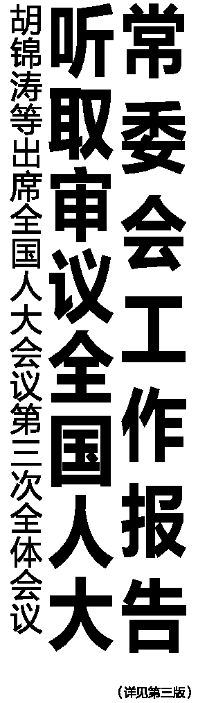 胡锦涛等出席全国人大会议第三次全体会议