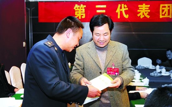 在3月10日举行的浦江县人代会上,该县国税局给每位人大代表送上了一份特殊“礼物”——《国税工作简明读本》。“少了点,最好多给几本。”县人大代表、浙江百炼工贸集团董事长张越康打算让公司更多的人熟悉税收业务。黄自强 摄