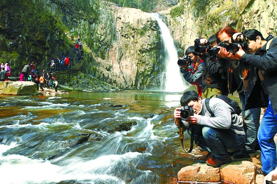 3月13日,摄影记者在五泄景区采访。最近,五泄国家森林公园被评为浙江省五星级森林旅游区。
