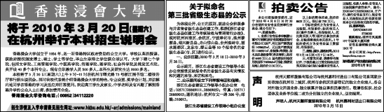 本校将于3月20日(星期六)上午9时~11时在杭州市曙光路73号浙江图书馆二楼报告厅举行招生说明会。届时我校代表将介绍香港浸会大学的特色、专业设置、奖学金计划,并讲解内地同学在香港的学习及适应并回答提问。欢迎高三学生及家长、中学老师及有兴趣了解到香港升学的公众人士出席,参加费用全免。