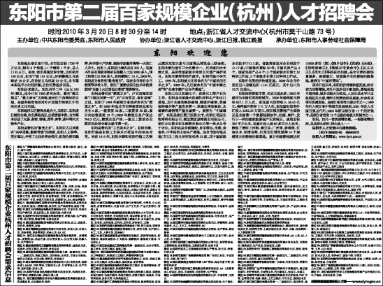 东阳市第二届百家规模企业(杭州)人才招聘会