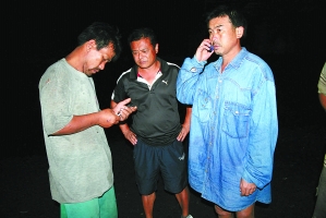 图为获释渔民抵达林贝后立即向家人报平安。 新华社发