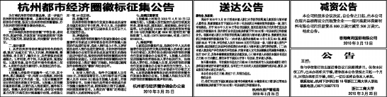 1.投稿截止时间为2010年4月20日(以邮戳为准)。2.投稿人须在提交作品时注明真实姓名、联系电话、通讯地址、邮政编码、身份证号码等。3.作品寄送310041浙江省杭州市体育场路218号杭州新闻大厦1806室(信封注明“徽标征集”),电话:(0571)85051886,传真:(0571)85160531。