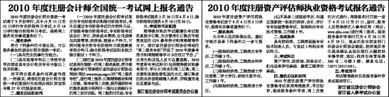 2010年度注册会计师全国统一考试将于9月份举行,其中:9月11日至12日举行专业阶段科目考试,9月18日举行综合阶段科目考试,现将网上报名有关事项通告如下: