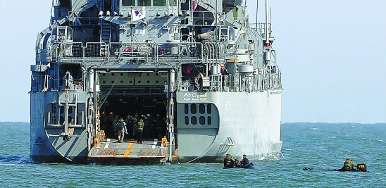 图为3月29日,在韩国白翎岛西南海域,搜救船只正在进行搜救工作。