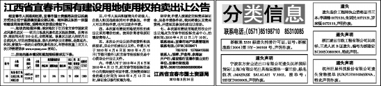 七、本次国有建设用地使用权公开出让地点为宜春市招投标交易中心,拍卖时间:2010年4月15日上午10时。