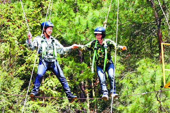 义乌市国税局组织50多名女税官,前往义乌市职工野外拓展基地,开展野外拓展训练活动。在拓展训练基地,女税官一改平常工作中的文静,全身心地投入到各种拓展项目当中。马义生 摄