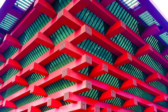 中国美院的设计团队为中国馆定下了“红妆”。 IC供图