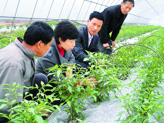 农业专家在孟塘果蔬专业合作社大棚内解答菜农的疑难问题。记者 徐宪忠 摄