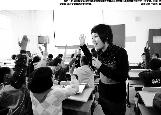 昨日上午,来自我省温州的支教教师孙安娜正在青川县房石镇九年制学校为孩子们上语文课。目前,我省共有50名支教教师在青川任教。本报记者 王志浩 摄