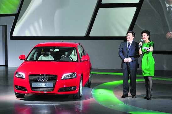 | 一汽—大众奥迪品牌在3月29日举办的科技日活动中,首次向国内消费者展示了在高效科技领域的创新成果——奥迪氢燃料电池技术和e-tron纯电动概念车,以及代表奥迪现有高效技术的全系高效车型,其中包括首次在中国亮相的奥迪A3系列车型。图为一汽-大众奥迪销售事业部执行副总经理张晓军(左)与主持人精彩互动的场景。 张强 金新 |