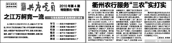 从2008年9月到2010年3月,全省8.47万个单位、282.83万名党员参加了深入学习实践科学发展观活动。本期《共产党员》杂志用“学习、发展、和谐、稳定、服务、基础”六个关键词串起其中精彩篇章,全景式展示科学发展观在浙江的生动实践。