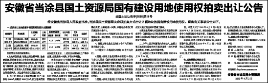 安徽省当涂县国土资源局国有建设用地使用权拍卖出让公告