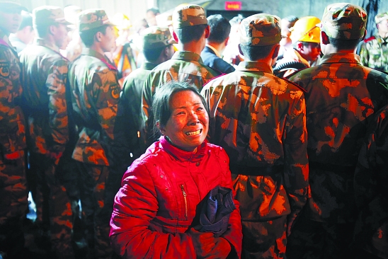 4月1日,一名被困井下矿工的女儿在井口等待消息。 新华社发