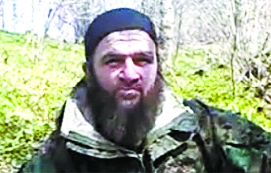图为车臣武装组织头目多库·乌马罗夫发表声明的视频截图。新华社发