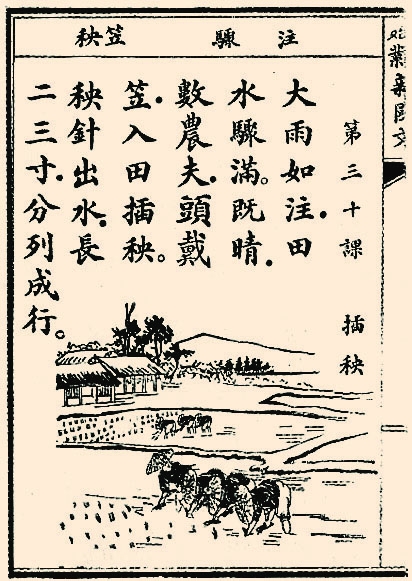五代后梁布袋和尚有诗云:“手把青秧插满田,低头便见水中天。心地清净方为道,退步原来是向前。”满田的粮食、希望和禅意。