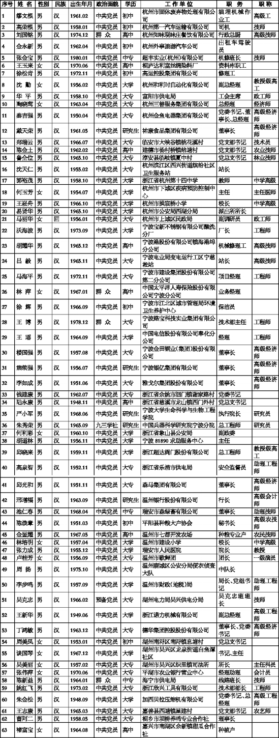8 沈 勤 女 汉 1956.02 中共党员 大学 杭州和利时自动化有限公司 副总经理 教授级高工