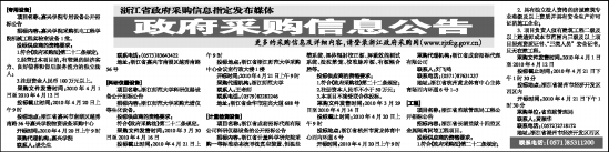 更多的采购信息及详细内容,请登录浙江政府采购网(www.zjzfcg.gov.cn)