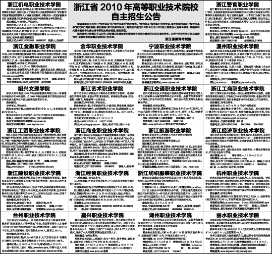 浙江省2010年高等职业技术院校