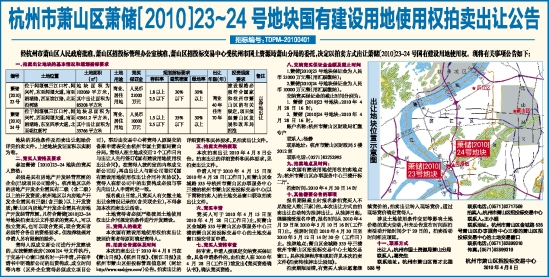 杭州市萧山区萧储〔2010〕23~24号地块国有建设用地使用权拍卖出让公告