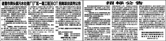 诸暨市牌头镇污水处理厂(厂区一期工程)BOT招商项目谈判公告