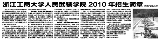 浙江工商大学人民武装学院2010年招生简章