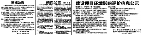 受北仑区人民法院委托,并经仑土资拍(2009)18号文件核准,本公司定于2010年4月29日下午3时在北仑区人民法院第一审判庭(北仑区明州西路187号)举行拍卖会。