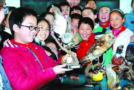 春季是鸟类繁衍生息的最佳时期,日前,建德市新安江第二小学五(四)班利用科学课程,用学校陈列的各种鸟类标本向学生