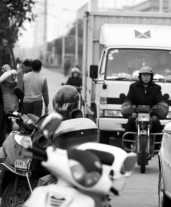 在嘉兴一些农村公路上,人车混行。 华敏 摄
