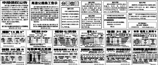 更多信息查询:浙江体育彩票网 www.zjlottery.com